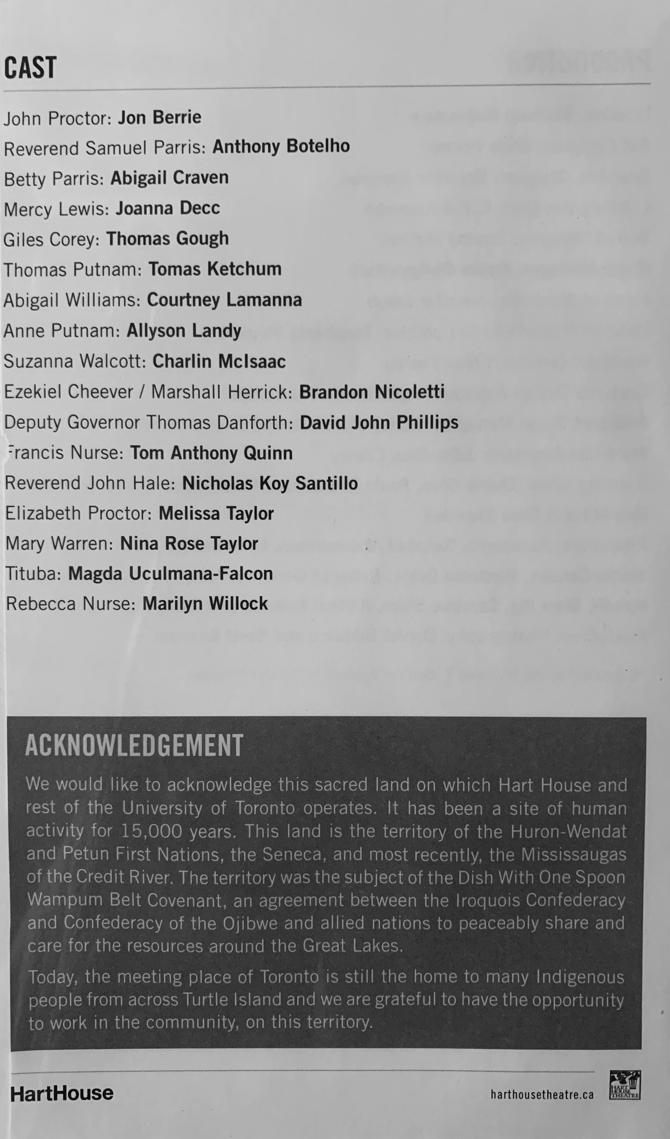 “Of course, The Crucible would be nothing without the semi-sadistic Abigail Williams played by Joanna Decc, who expertly embodied the unstable child. Scrupulously manifesting all menacing angles of her role, Decc delivered a truly compelling performance.”︎︎︎